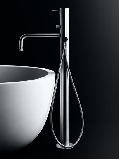 Die Armaturserie Minimal besticht durch ihr Industriedesign in satiniertem Edelstahl.