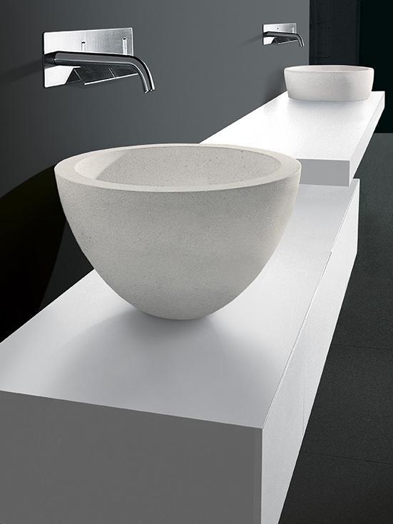 Das Auflagewaschbecken Adda ist in Corian und Keramik erhältlich.