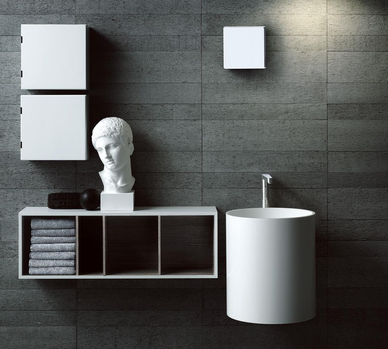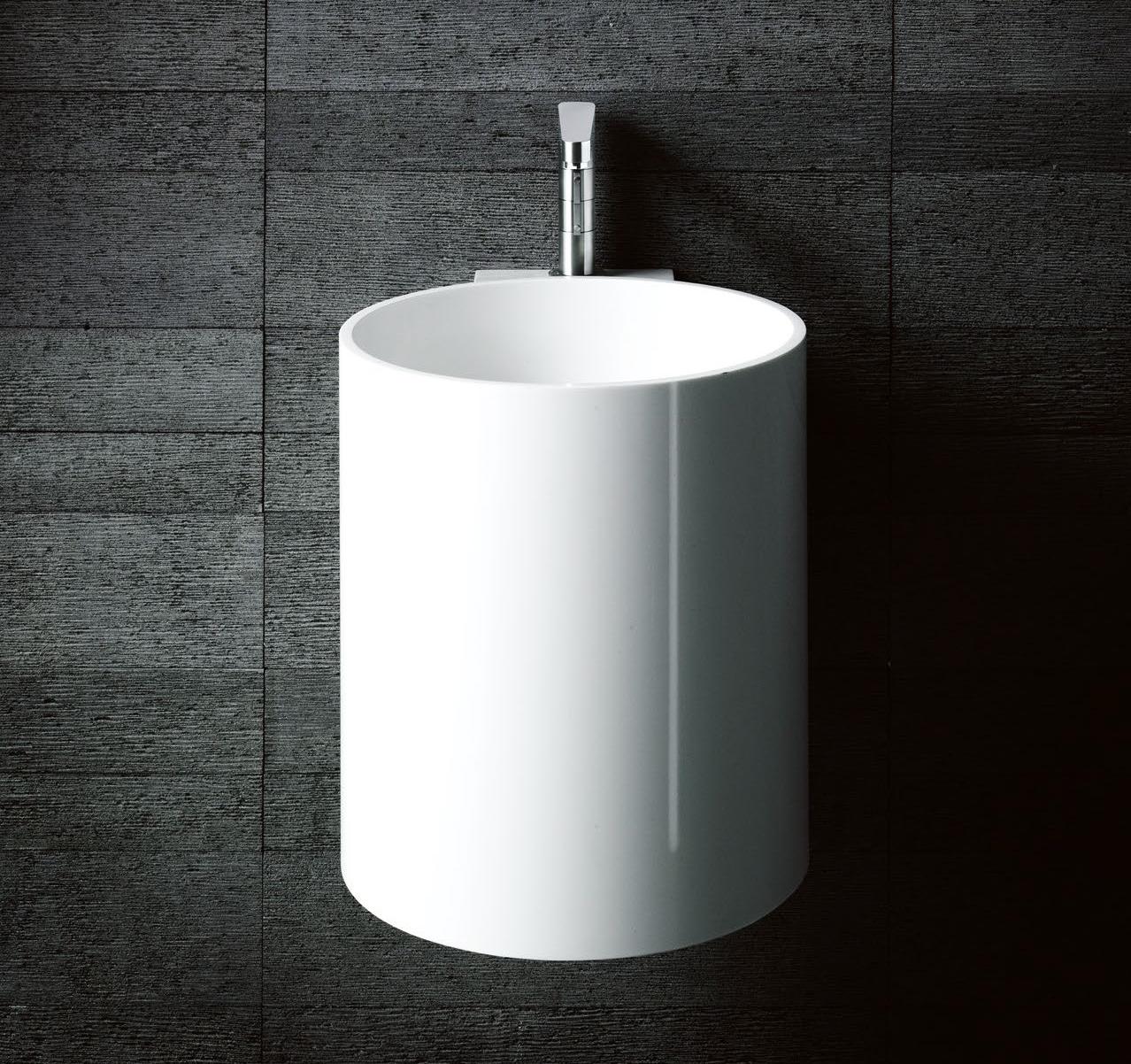 Waschbecken in Säulenform erhältlich in Ceramilux® oder Corian® in weiss matter oder glänzender Ausführung.