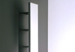 Spiegel mit Profilrahmen aus eloxiertem Aluminium mit hinten angebrachten Fachböden.