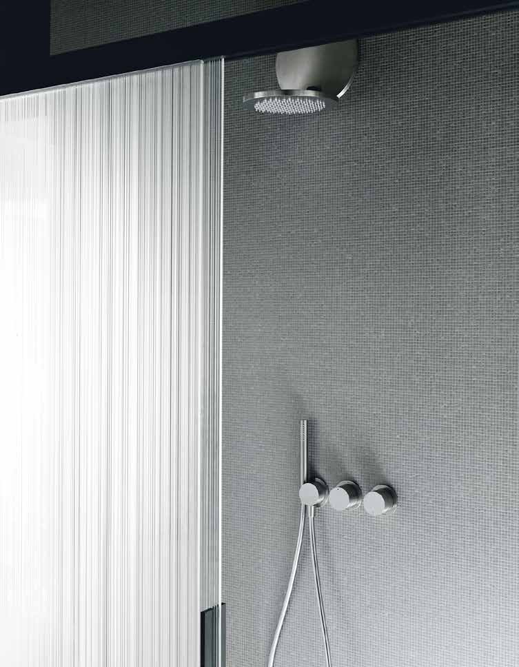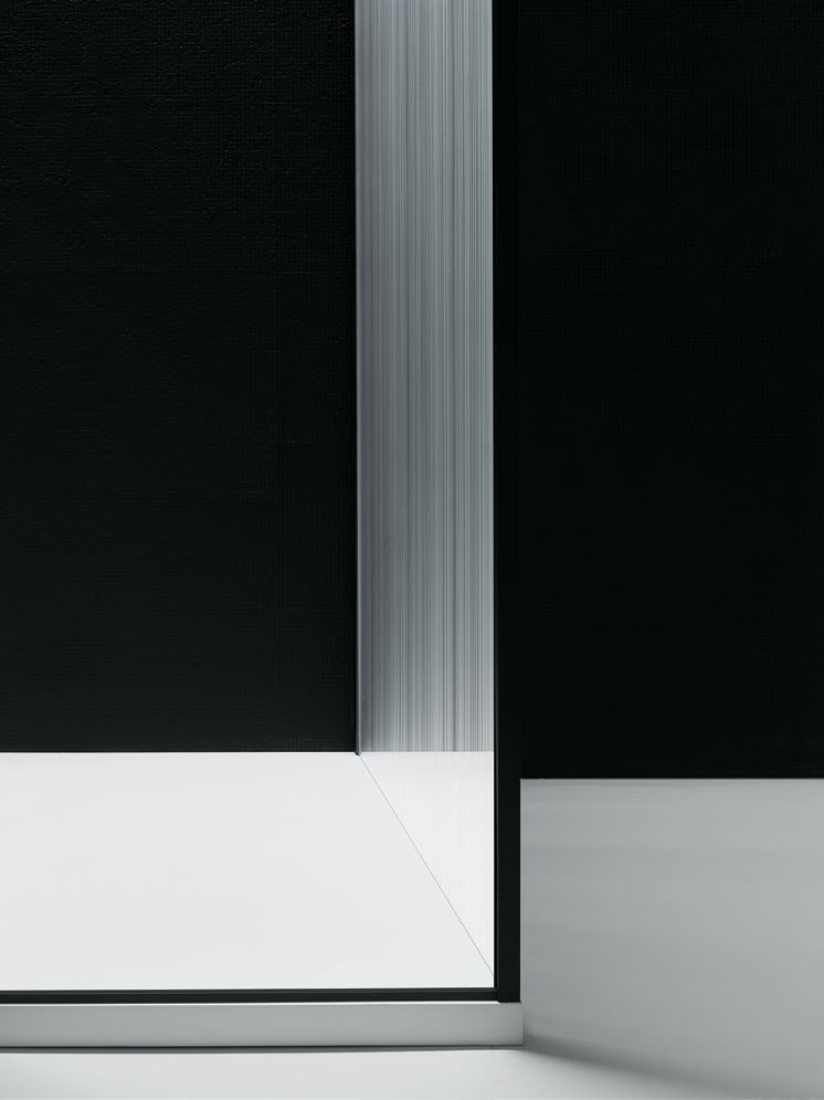 Exclusive shower box made of tempered glass. The profiles and handle are made of anodised aluminium, in black or stainless steel finishes. Highly customisable.