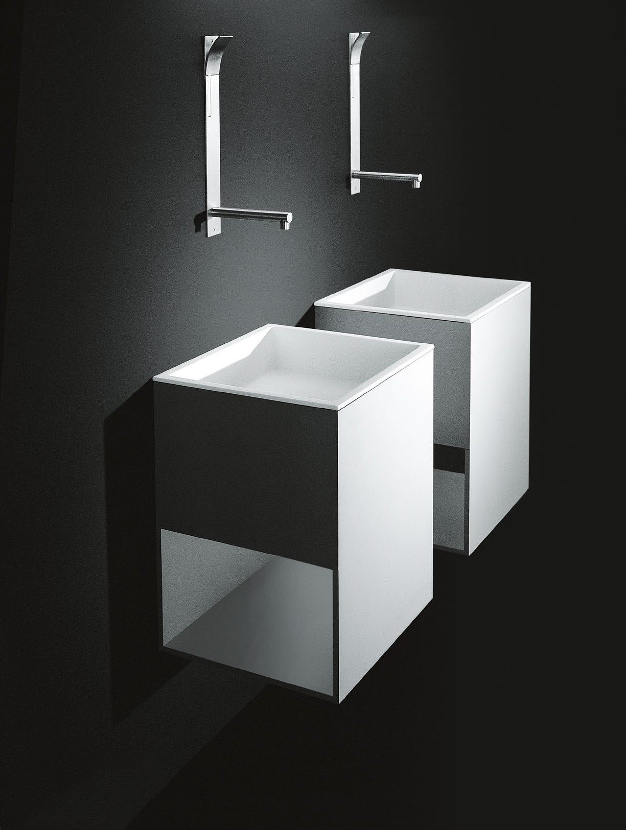 Waschbeckenkomplex aus Cristalplant® in weiss oder Aluminium.