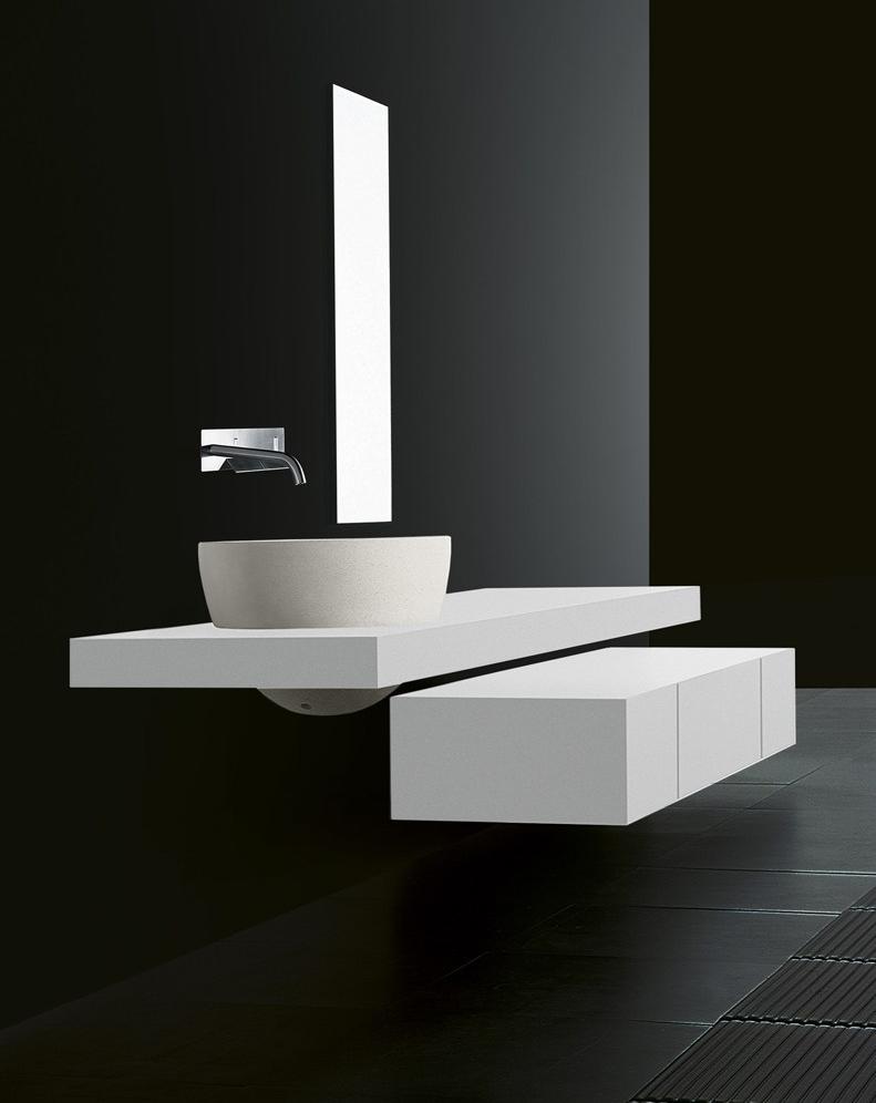 Das Auflagewaschbecken Adda ist in Corian und Keramik erhältlich.