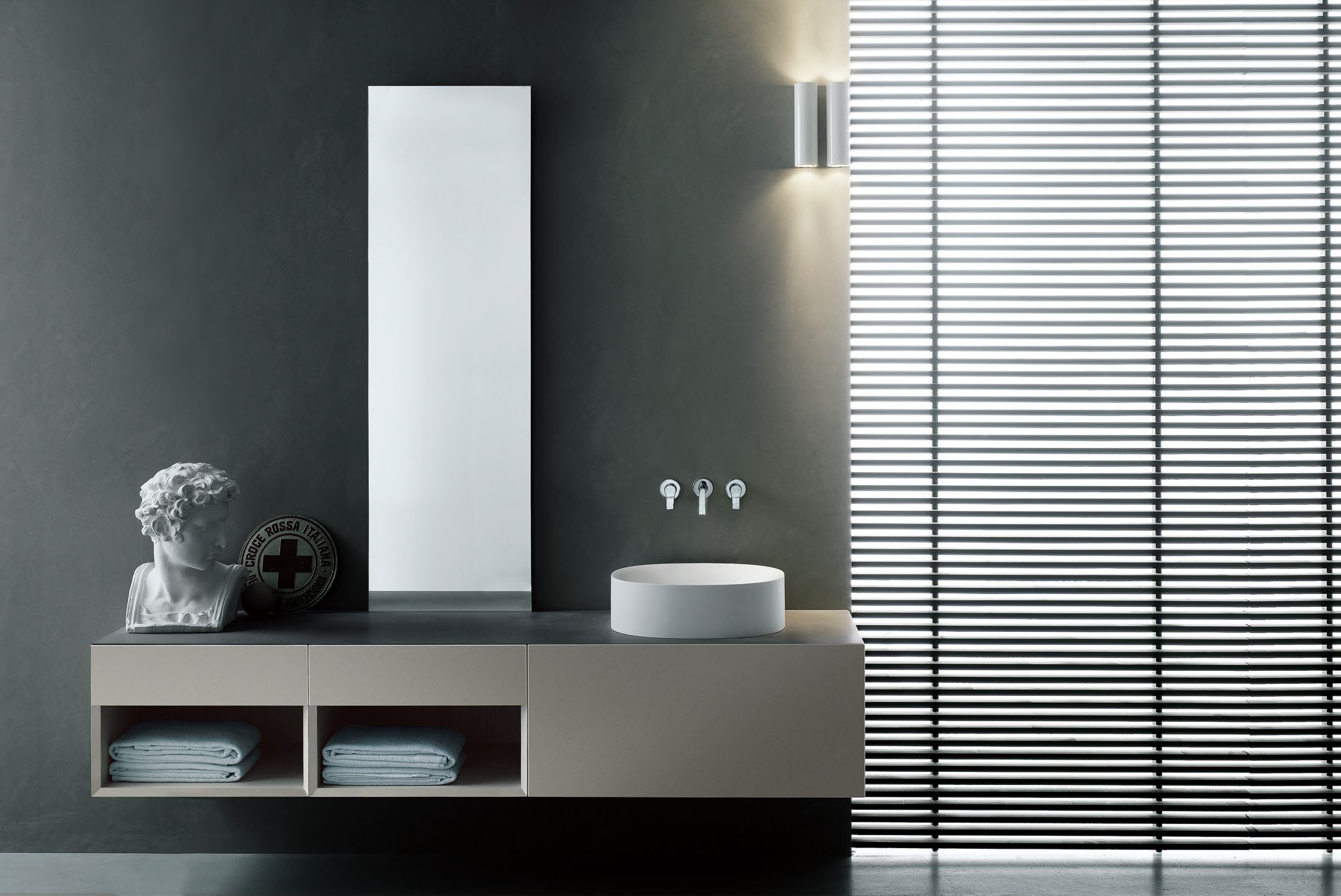 Passend zur Badewanne Sabbia gibt es das Waschbecken Sabbia als Auflage-, Stand- oder nahtlos in die Abdeckung integrierte Version.