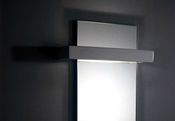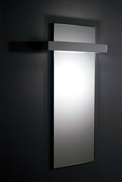 Mirror with aluminium frame. Complementary white ceramic lamp can be added to the mirror.