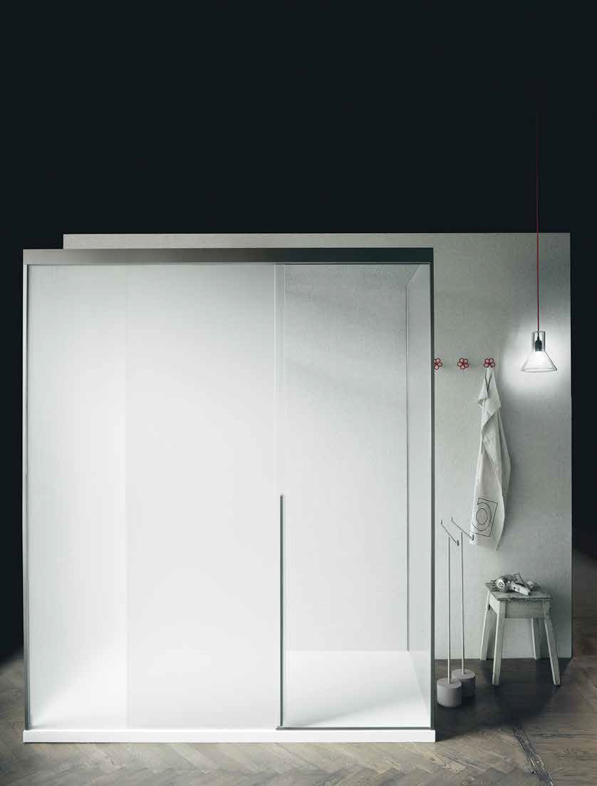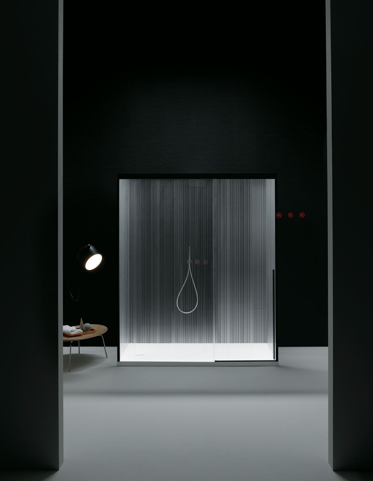 Exclusive shower box made of tempered glass. The profiles and handle are made of anodised aluminium, in black or stainless steel finishes. Highly customisable.